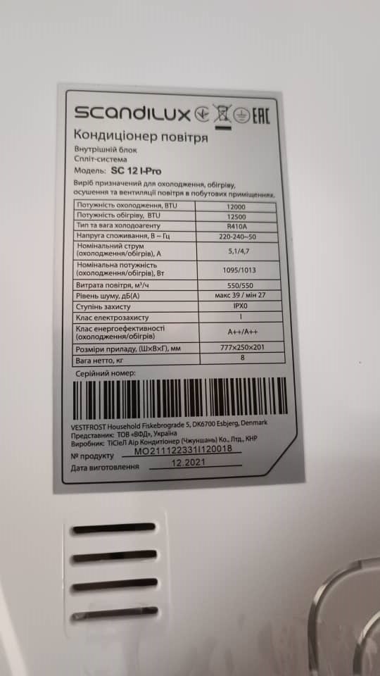 مشخصات کلی کولر گازی scandilux اینورتر 12000 :