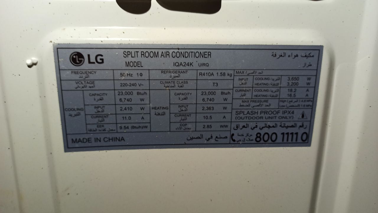 مشخصات و خرید کولر گازی 24000 ال جی مدل IQA24K
