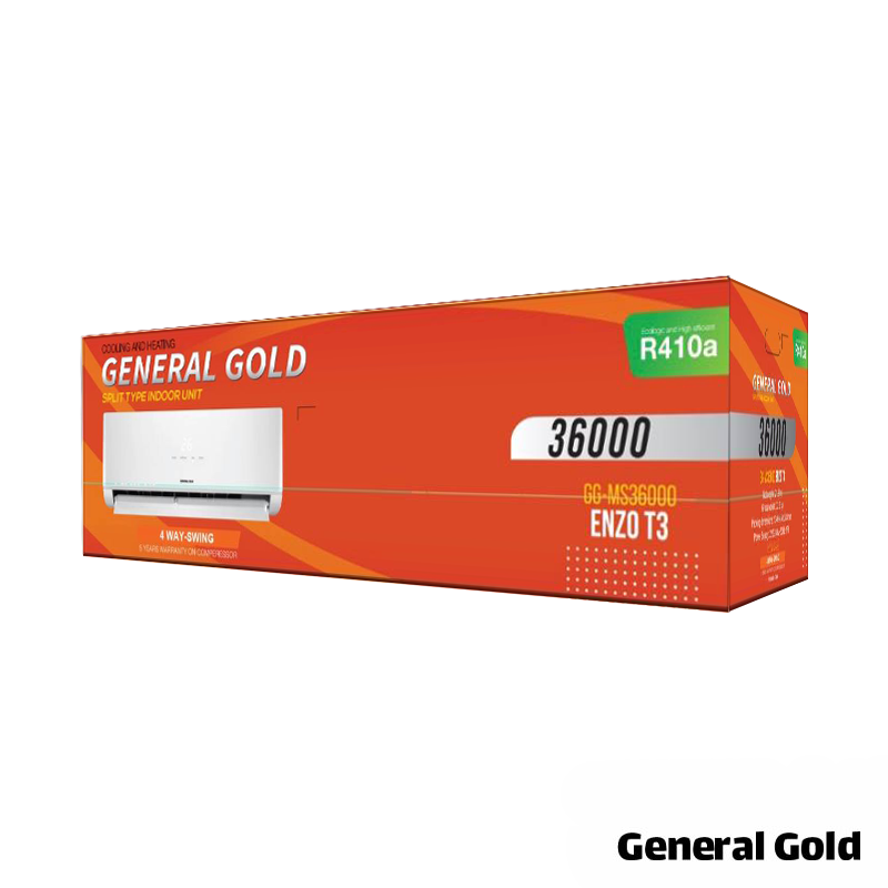کولر گازی جنرال گلد مدل GG-MS36000 ENZO توان 36000 از دو یونیت داخلی و خارجی تشکیل شده اند که این دو یونیت با لوله های مسی با یکدیگر در ارتباط هستند. این کولر گازی از کمپرسور روتاری استفاده می کند و برای محیط هایی با کلاس آب و هوایی معتدل، گرم و شرجی مناسب است.